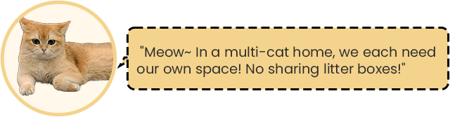 ✔ Follow the formula: Number of litter boxes = Number of cats + 1.