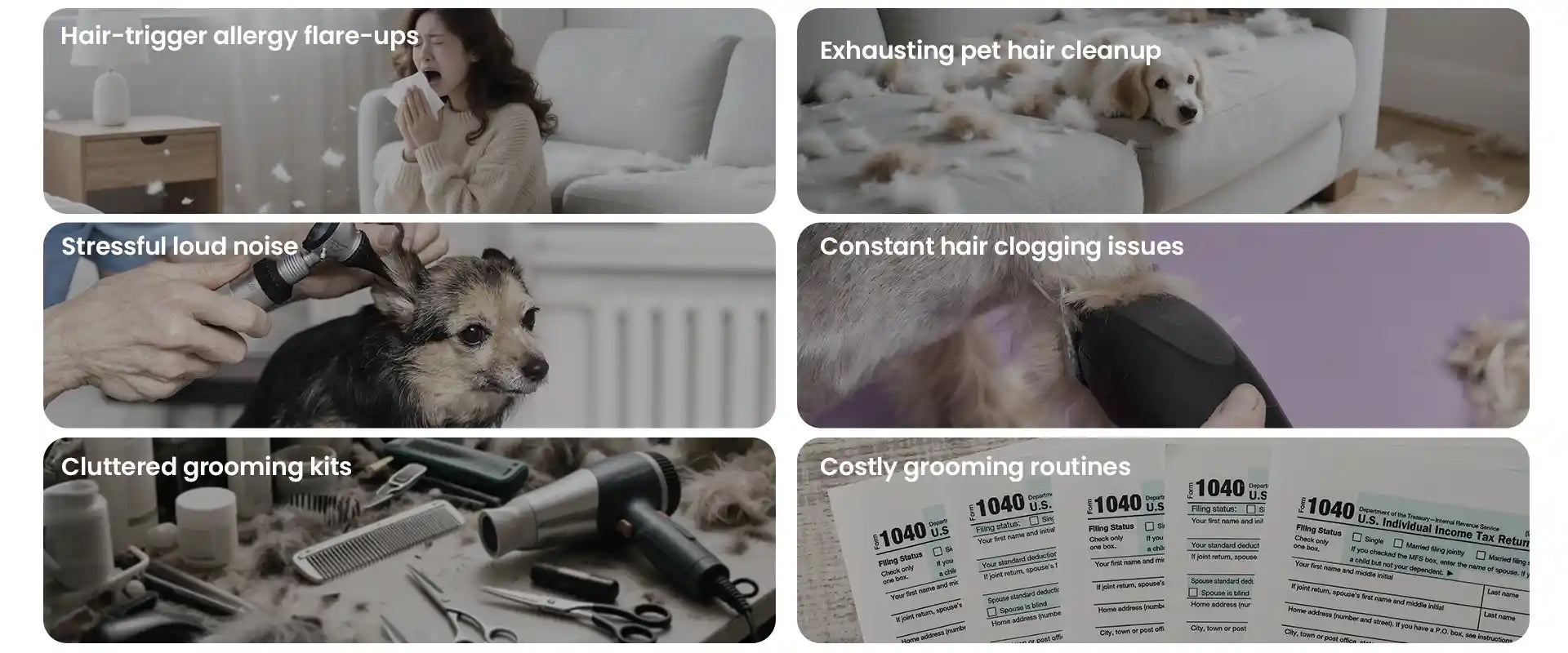 From scattered fur and costly salon visits to clean, easy, and all-in-one grooming — that’s the S1 Pro difference.