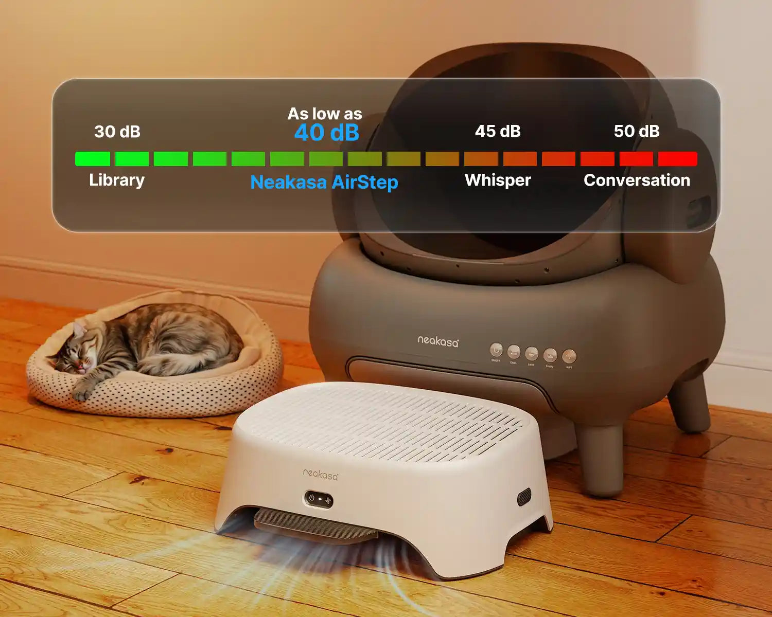 With noise levels as low as 40 dB, Neakasa AirStep operates quietly in the background.