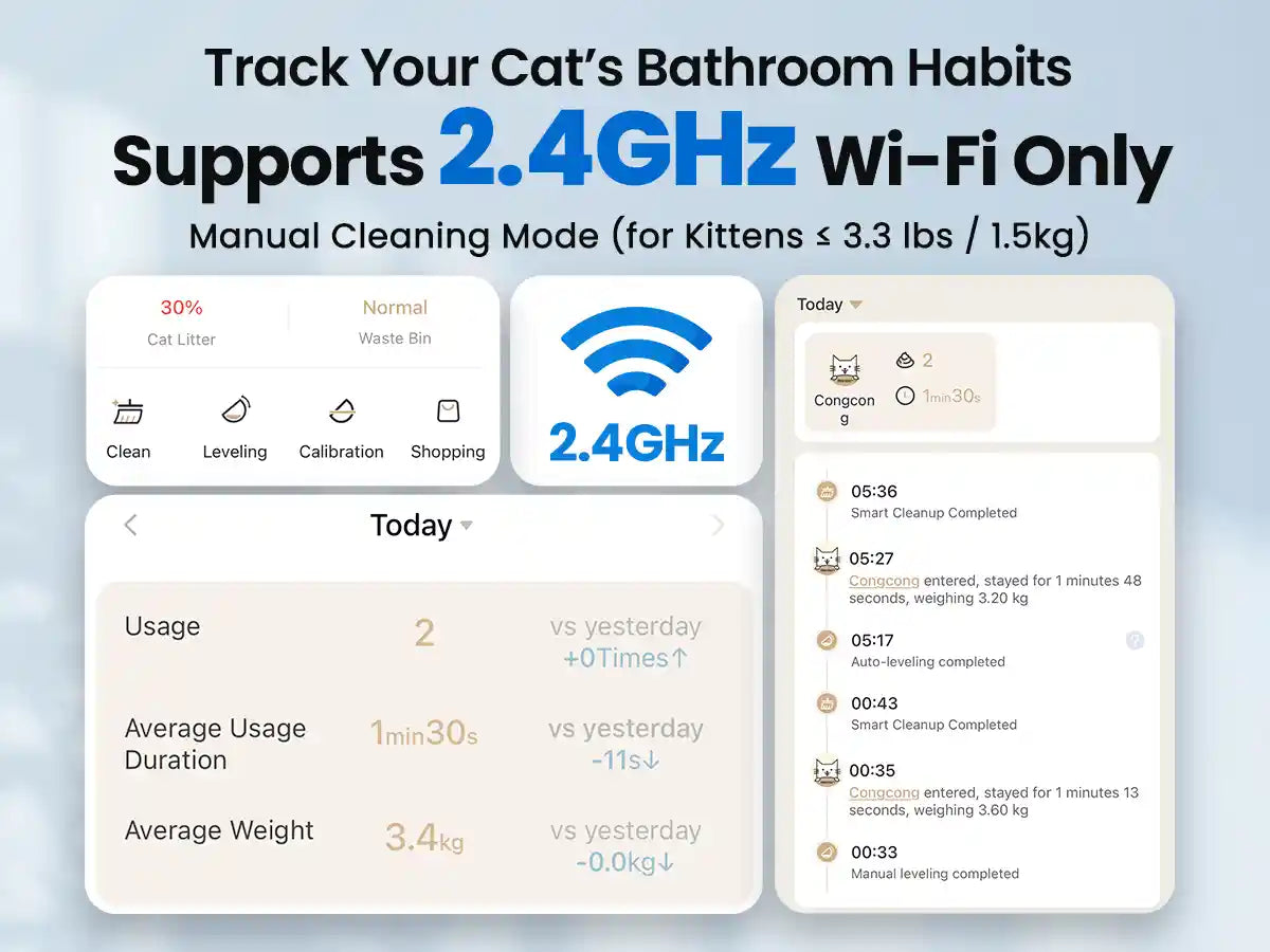 Effortlessly monitor your cats bathroom habits, track litter levels and learn when to add litter, and remotely control operation modes at your fingertips.