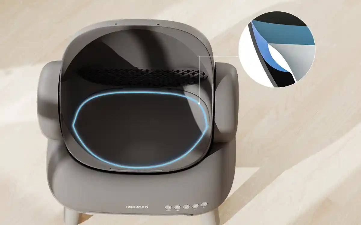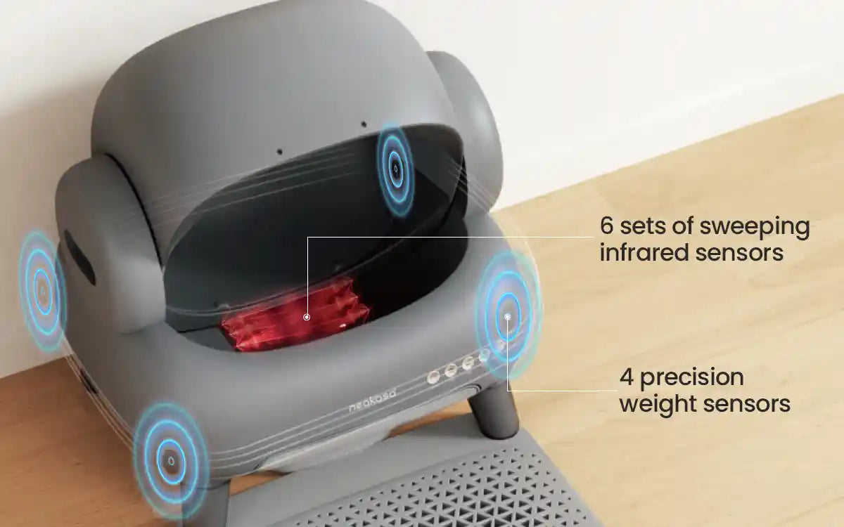 To ensure your cat's safety, there are 6 pairs of swiping infrared sensors and 4 weight sensors inside the Neakasa M1.