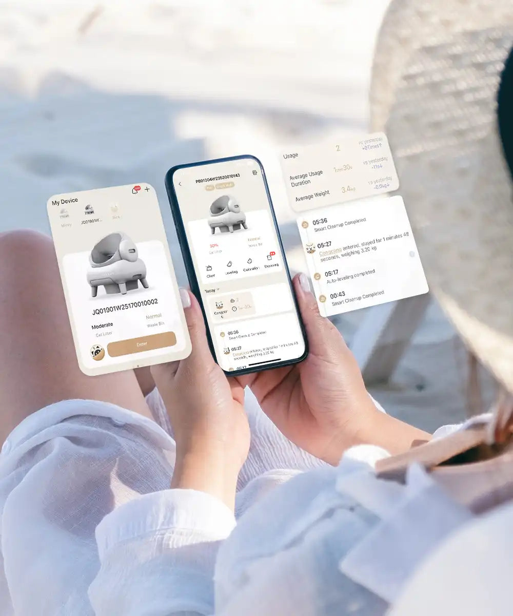 Monitor Neakasa litter boxes directly from the Neakasa app. Track activity across all your cats and keep everything running smoothly.