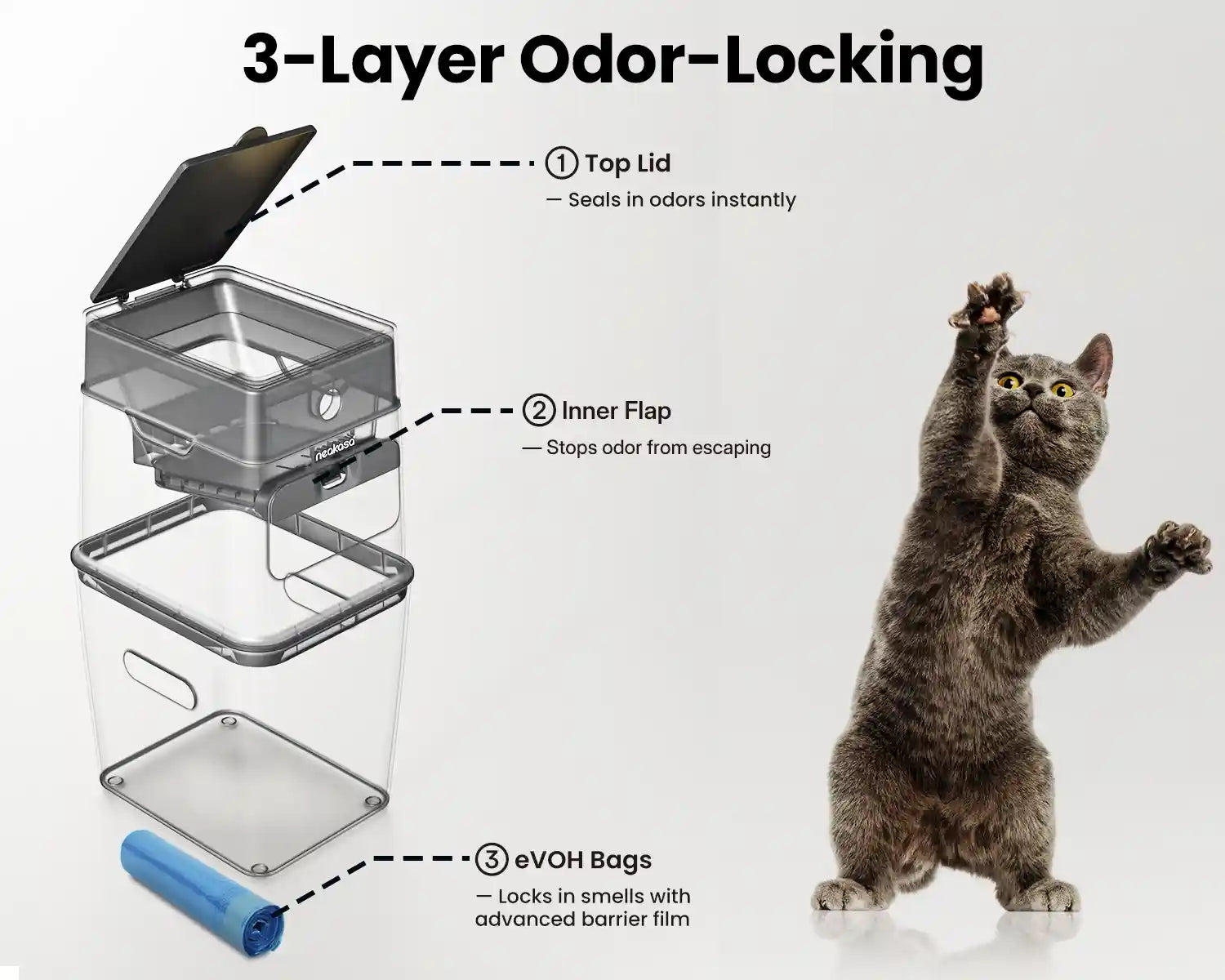 Neakasa PooGuard is engineered with a 3-layer odor-sealing design that tackles pet waste odors from every angle.